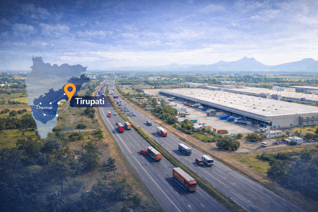 Tirupati now has strong connectivity through NH-40, which connects the city to Chennai in roughly three hours. The growth of APIIC industrial zones, the presence of Tirupati International Airport, and relatively lower land costs have made the city attractive for logistics and warehouse operations.
